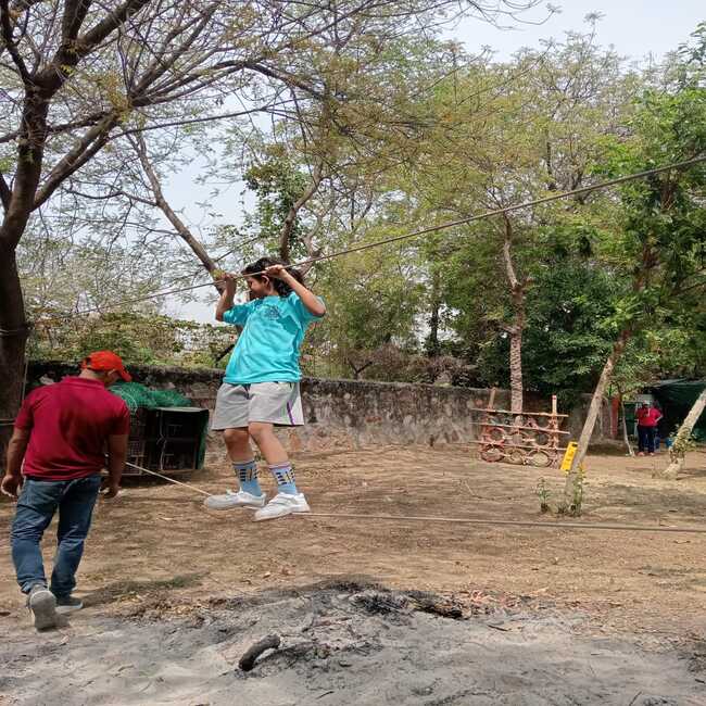 The camp offered a wide range of thrilling and engaging activities. The students enthusiastically participated in adventure-based challenges such as zip line, artificial wall climbing, Burma bridge, commando net, double trouble, rope climbing, Tarzan swing, rope ladder, spider web, net crawling, and tyre crossing. These activities encouraged them to step out of their comfort zones and build resilience.